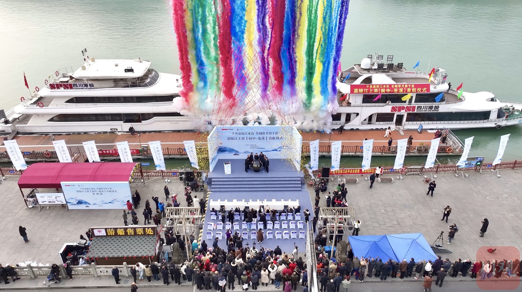 此次首航的“阆中—苍溪”航线,串联起南充阆中与广元苍溪,单程约3小时,覆盖嘉陵江精华水域,三段曲流尽显山水灵秀,沿途串联阆中古城、滕王阁等核心景点,形成天然的“水上观景长廊”,适配半日游、一日游需求。