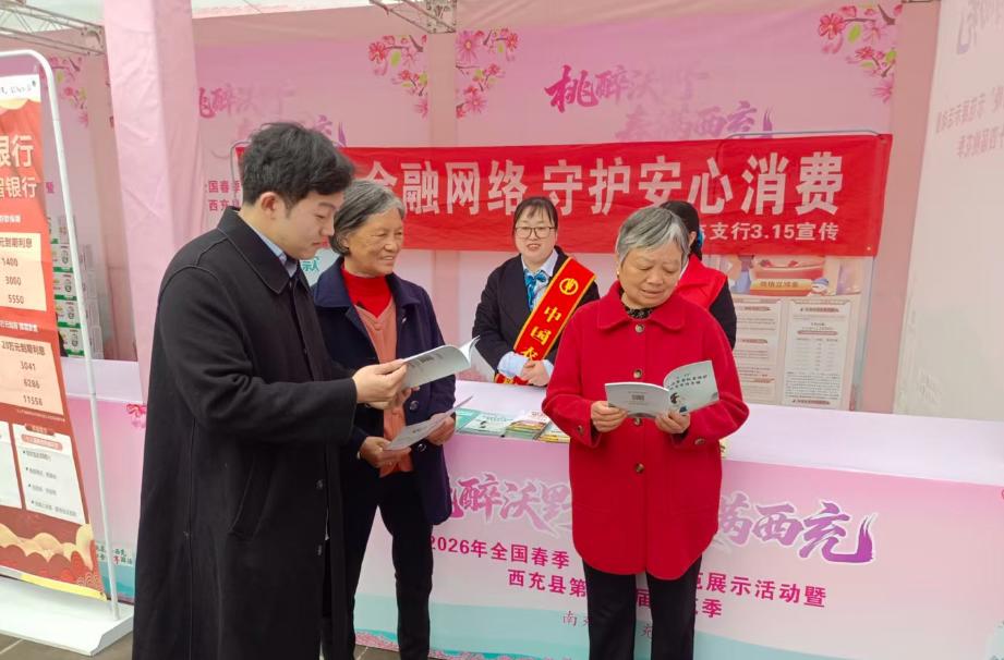 在这片浪漫的花海中,中国农业银行西充支行以“清朗金融网络 守护安心消费”为主题,将金融知识宣传融入春日盛景,开展“3·15”消费者权益保护专项活动,为往来游客与当地群众送上一份贴心的金融安全“护身符”。