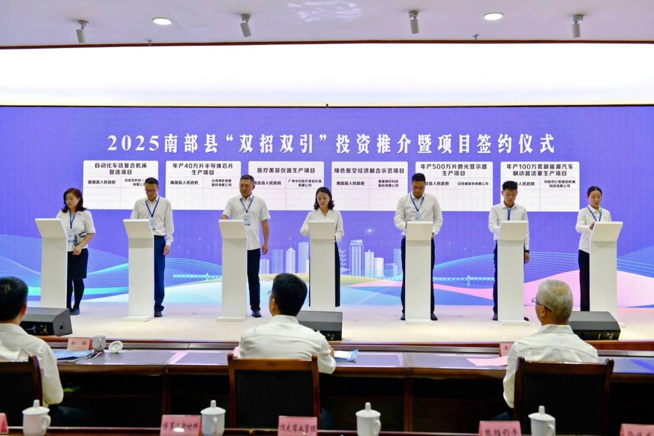 9月26日,2025南充市南部县“双招双引”投资推介暨项目签约仪式在南部县会议中心举行。记者从现场了解到,现场签约项目12个,协议总投资41.58亿元,涉及工业、文旅、商贸等领域。