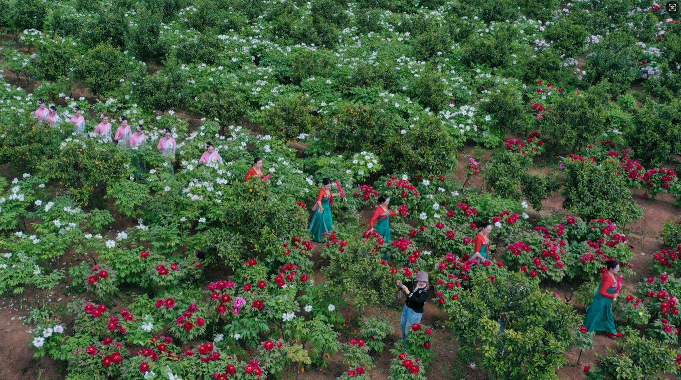 走进牡丹园,仿佛踏入了一片花的海洋。成片种植的500万株牡丹一片接连一片沿着山势蔓延,花瓣层层叠叠,色泽鲜艳夺目,尽显雍容华贵之态。微风拂过,花海泛起层层涟漪,馥郁的花香飘散开来,令人陶醉。游客们穿梭在花丛之间,纷纷拿出相机、手机,定格这美好瞬间,还有不少身着汉服的国风爱好者,他们衣袂飘飘,为缤纷牡丹园增添了一抹浪漫古韵。