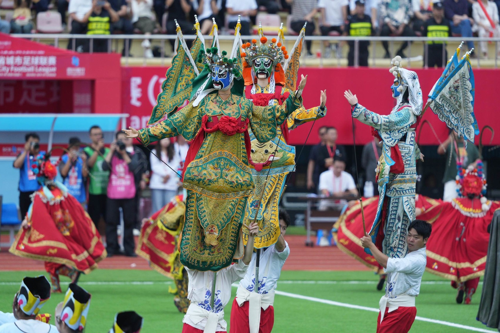 来自广安的球迷杨金桥深感惊艳:“非遗、川剧、本土歌曲轮番上演,太震撼了。看完比赛,我迫不及待想去吹吹嘉陵江的晚风,看看那传神的大木偶。”