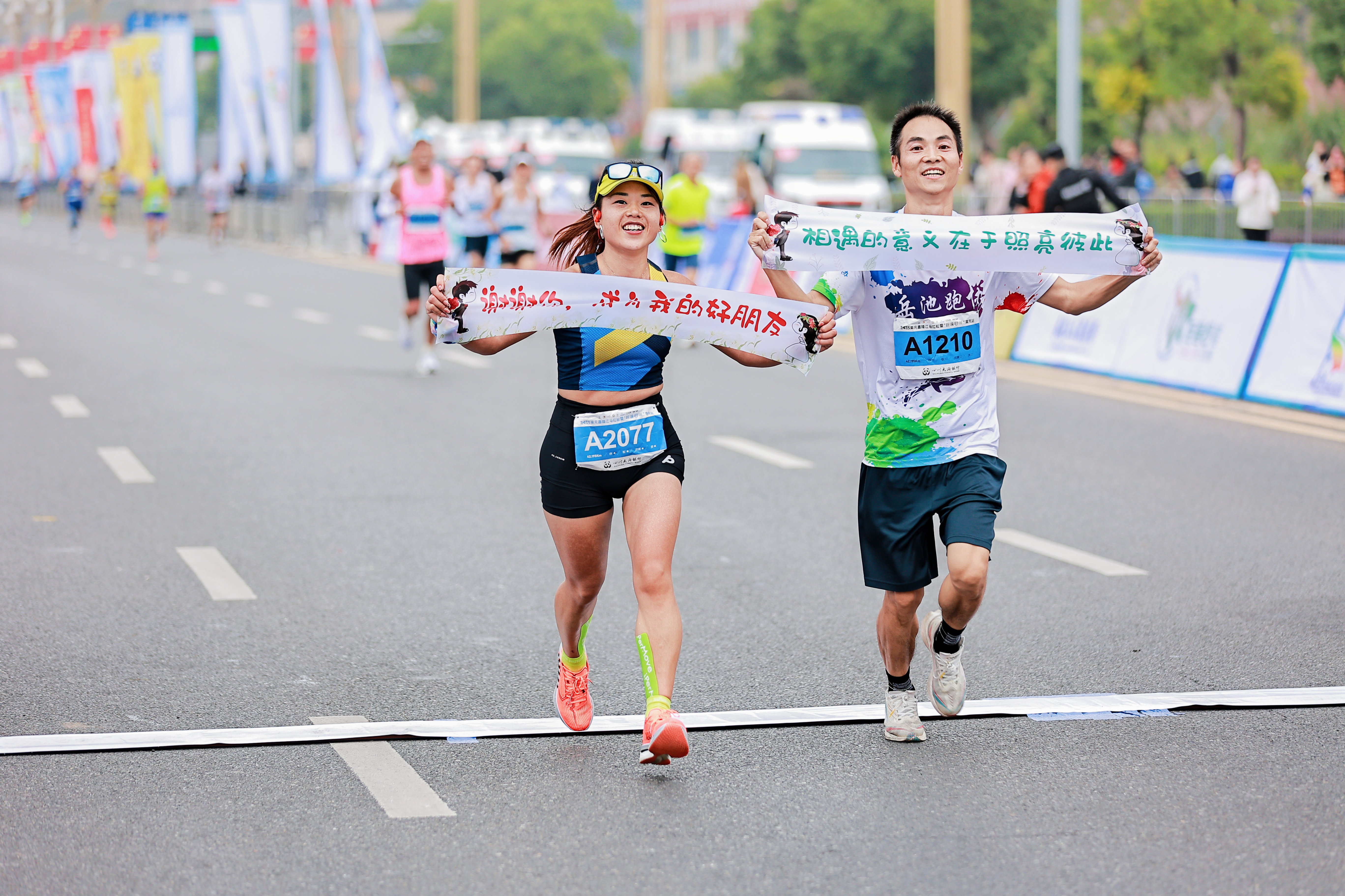 在半程马拉松的角逐中,年仅21岁的重庆选手高敬淞以1小时08分25秒的成绩率先冲线,勇夺男子组冠军;女子组冠军由刘加素获得,成绩为1小时22分27秒。