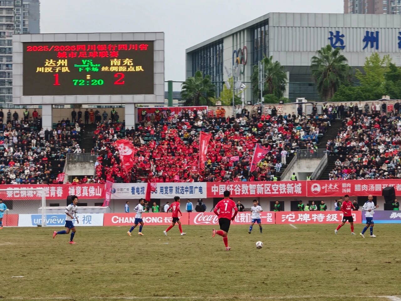 11月8日15时,“川超”川东赛区迎来一场焦点对决——达州川汉子队坐镇达州体育中心主场迎战南充丝绸源点队。经过90多分钟的激烈比拼,南充丝绸源点队凭借出色发挥,以2:1战胜对手。