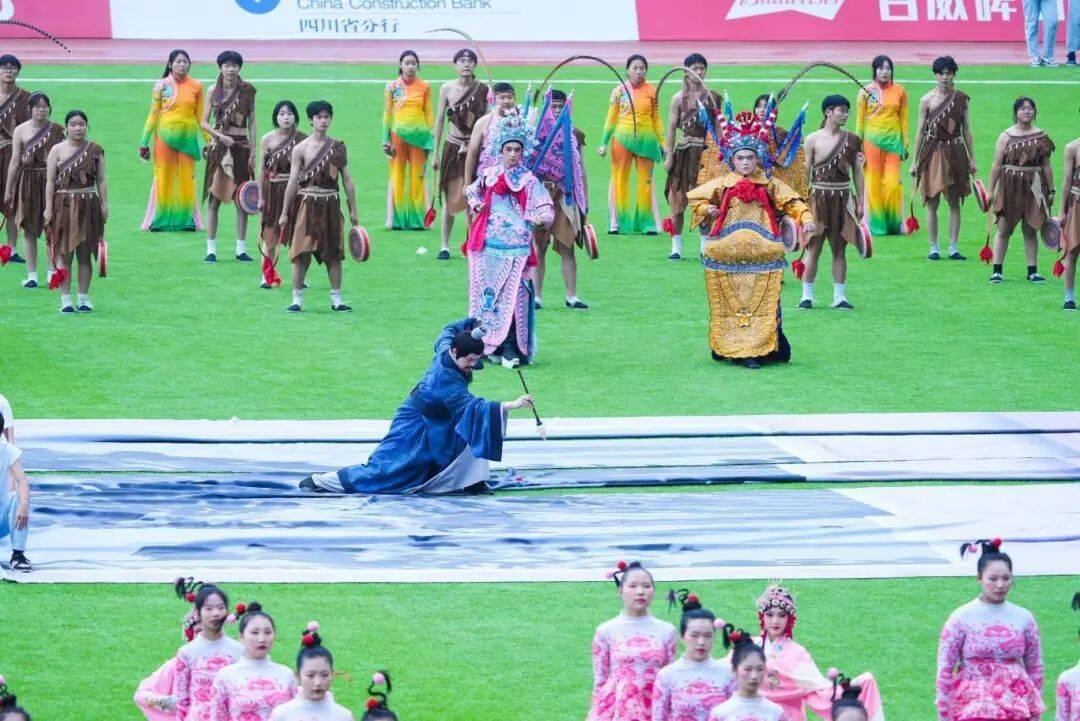 “我们历史文化底蕴深厚,各个县市区都有相应的特色。”赛前节目总导演张勇在接受采访时说。南充的文化特色被巧妙融入表演构思中,每场比赛前的30分钟,不只是文艺暖场,更是一幅展示南充深厚历史文化底蕴的“文化长卷”。