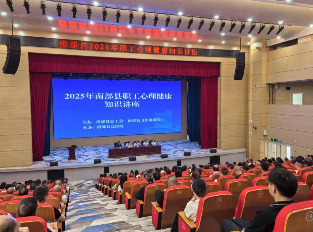 四川在线南充频道(罗山)5月16日,由南部县总工会、南部县卫生健康局联合主办,南部县总医院承办的"2025年南部县职工心理健康知识讲座"在县人民医院学术报告厅举行。活动吸引全县百余家企事业单位代表参与,通过"专业讲座+互动体验+长效服务"模式,筑牢职场心理健康防护屏障。