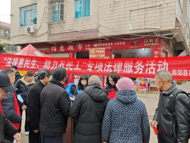为切实保障农民工合法权益,深入推进法治宣传教育工作,近日,南部县司法局盘龙司法所联合县法律援助中心、局普法与依法治理股、镇综治办,在辖区集市开展“法援惠民生、助力农民工”专项法律服务活动暨《法治宣传教育法》宣传活动,将专业法律服务与实用法律知识送到群众“家门口”。