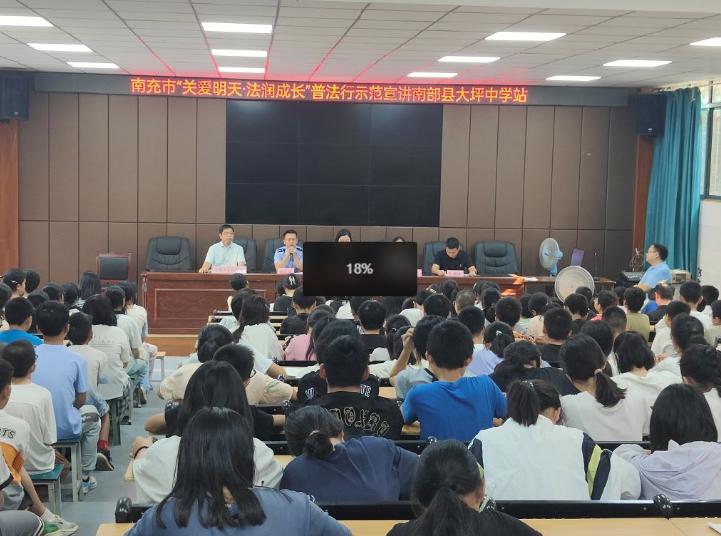 四川在线南充频道(祝磊)为切实做好未成年人安全法治教育,增强未成年人法治意识和自我保护能力,营造未成年人健康成长良好环境。9月20日上午,南部县司法局联合市未成年保护中心、县教体局、大坪派出所等单位在大坪中学积极开展“关爱明天 法润成长”普法行普法宣传活动,活动由大坪中学校长何明武主持,市未成年保护中心社会工作师蔡青卿为该校师生授课。