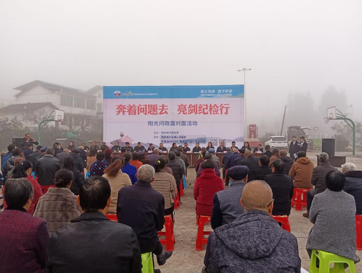 四川在线南充频道(刘桔浈)“大家有什么问题和意见建议都可以现场提出来,在场的职能部门会进行答复……”11月22日上午,由南部县纪委监委主办,大王镇党委政府和南部县24365“有事找纪检”全天候护民平台共同承办的“奔着问题去·亮剑纪检行”——“阳光问政面对面”活动在大王镇羊角山村举行。县农业农村局、居保局、医保局、经信局、建兴派出所与70余位群众参与了现场问政活动,来自基层的人大代表和政协委员作为特邀观察员全程参与并对活动进行了精准点评。