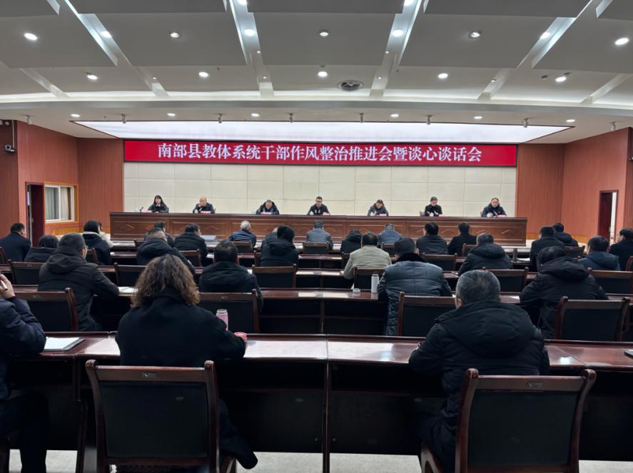 四川在线南充频道(张根)1月11日上午,南部县教体系统召开干部作风整治推进会暨谈心谈话会议。会议以视频会议形式召开,主会场设在县会议中心二会议室,各乡镇(街道)、南部中学、南部二中、南部三中等设分会场。县委教育工委书记、县教体局党组书记任江作了讲话,县教体局党组成员、副局长雍春红主持会议。