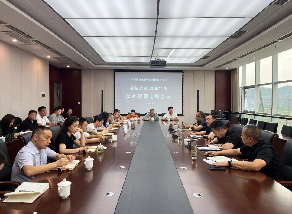 为进一步强化关键岗位人员纪律作风建设,筑牢拒腐防变思想防线,营造清正廉洁的干事环境,6月6日下午,南部经开集团组织开展关键岗位人员集体廉洁谈心谈话。集团公司领导班子成员、各部门及子公司主要负责人等关键岗位人员参加。会议由党总支副书记、副总经理黄伟主持。