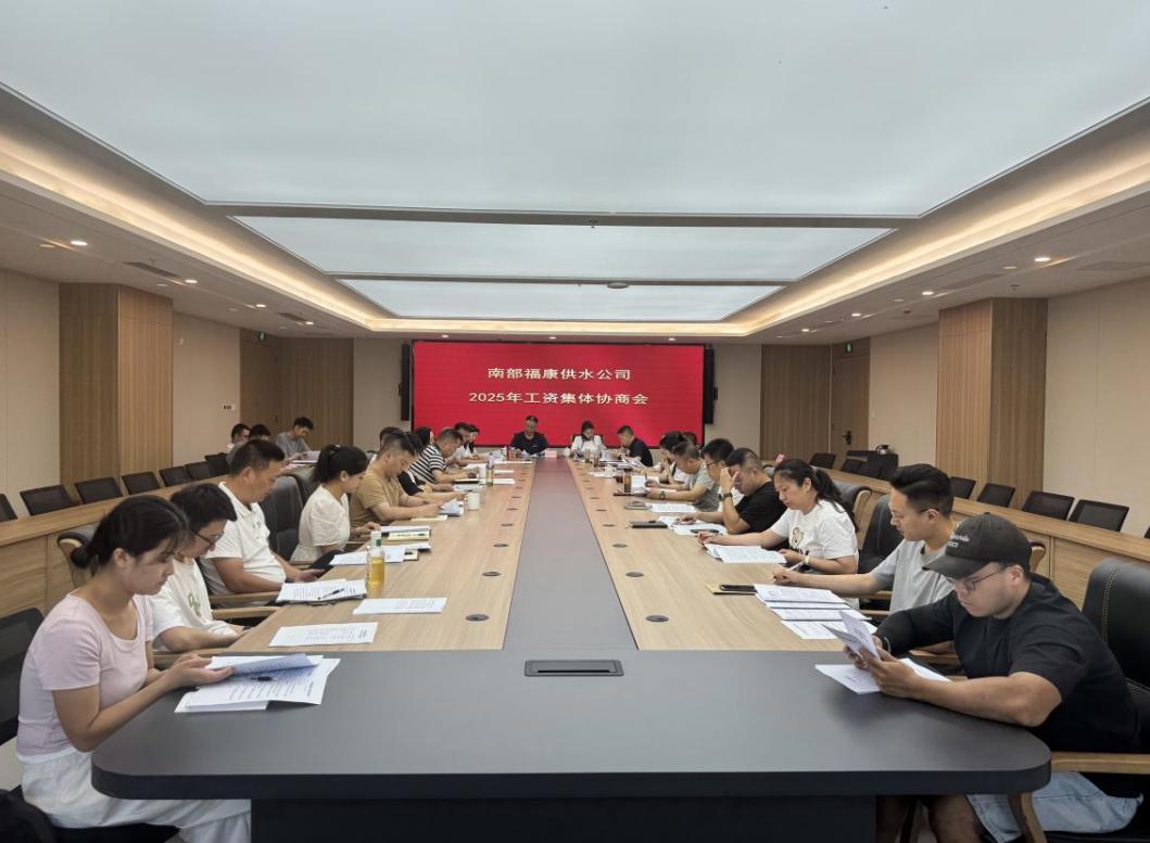 为有效维护公司和职工的合法权益,构建和谐稳定的劳动关系,6月13日,南部福康供水公司召开2025年工资集体协商会议。公司企业方代表、职工方代表、职工代表共计20余人参加会议,公司党总支纪检员、工会主席杨珊主持会议,县总工会工资集体协商指导员魏林泉到会指导。