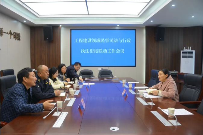 区法院与区城乡建设局、区综合行政执法局每年至少召开一次会议,通报本年度对工程建设领域违法行为的认定查处情况,总结开展衔接联动工作机制相关经验,解决工作中存在的困难和问题,研讨工程建设领域法律统一执行及适用问题。