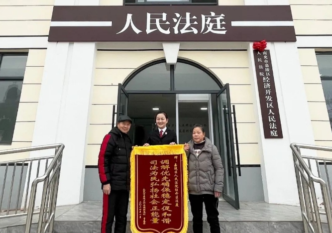 2024年1月,寒冬时节,腊梅飘香。一大早,50多岁的当事人李某手里拿着一面“调解优先确保稳定促和谐 司法为民弘扬社会正能量”的锦旗走进嘉陵区人民法院经开区人民法庭,向法庭庭长、员额法官邱媛送来感谢。鲜红的锦旗,为这个冬日增添一抹颜色,更添一分暖意。
