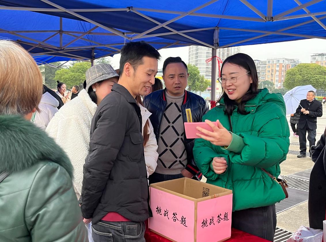 在挑战答题区,宣传员们开启了“吆喝”模式,鼓励现场群众积极参与“宪”学“宪”用学法达人挑战赛,并为挑战成功者派发指甲刀、春联、购物袋等法治小礼品,引导群众尊法学法守法用法,不断提升法治素养,不断增强依法维权能力。“我来告一下”“我也要挑战挑战”…… ,现场群众参与热情持续高涨。