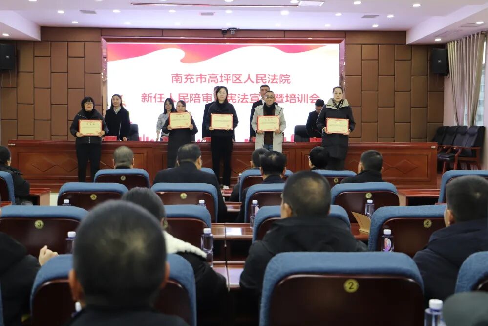 为进一步加强人民陪审员队伍建设,切实提高人民陪审员的参审业务水平和履职能力,12月6日,高坪区法院举行新任人民陪审员宪法宣誓仪式暨培训会。高坪区法院党组成员、副院长陈志,党组成员、政治部主任周志勇,高坪区司法局人民参与促进法治股股长袁钰及新任人民陪审员参加会议。