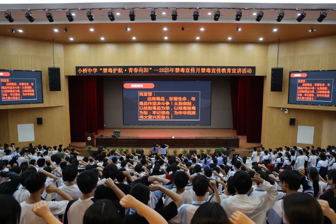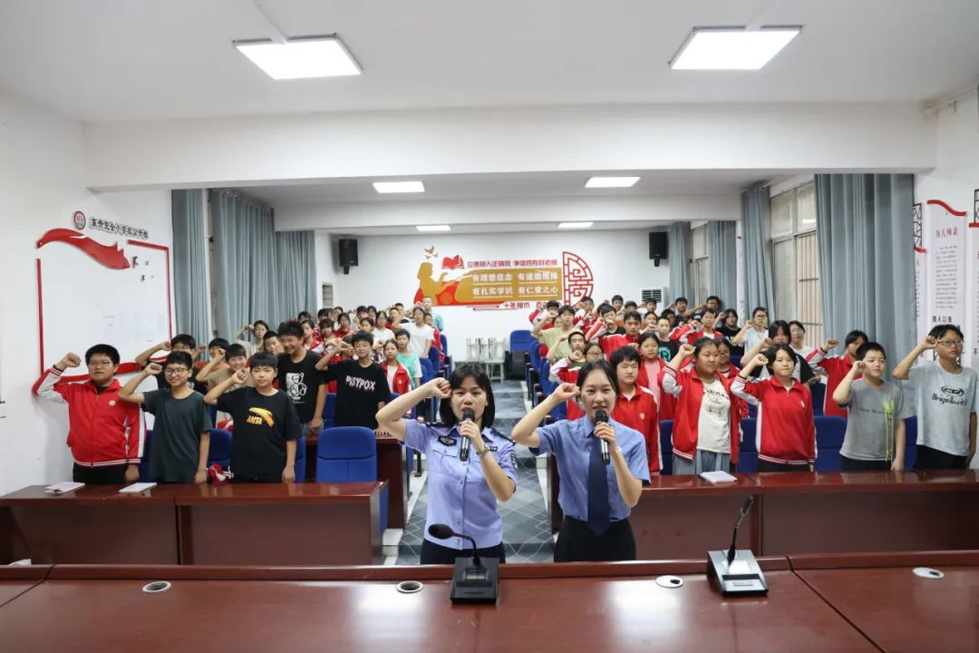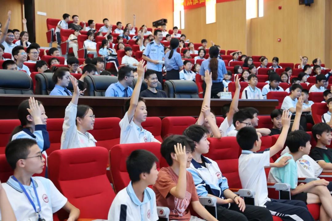 “我宣誓:远离毒品,珍爱生命,与毒品作坚决斗争!从我做起,以抵制毒品为荣,以吸毒贩毒为耻;牢记使命,为中华民族伟大复兴而奋斗。”在干警们的领誓下,参与禁毒课堂的百余名学生紧握右拳,发出铿锵誓言。