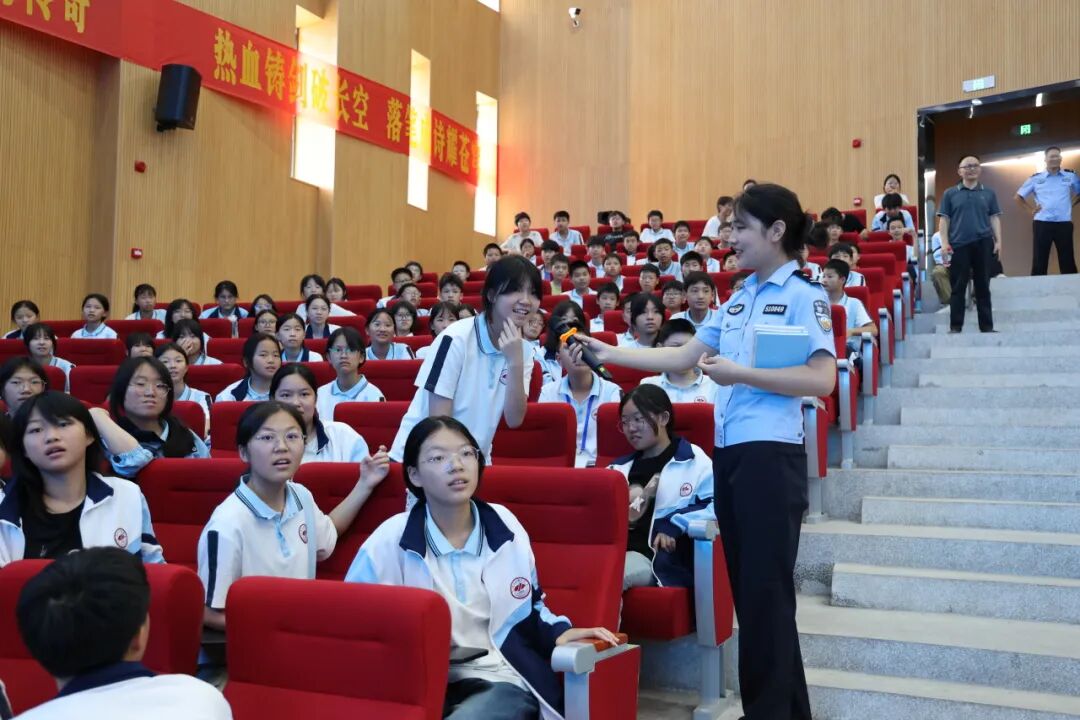 在知识问答互动环节,干警们围绕“毒品伪装形式”“吸毒违法性”等知识点设置问题,答对即可获得禁毒小礼品,学生踊跃举手抢答,干警们即时点评引导,在思辨中深化认知,在问答中巩固禁毒知识,确保禁毒知识入脑入心,现场气氛十分热烈。