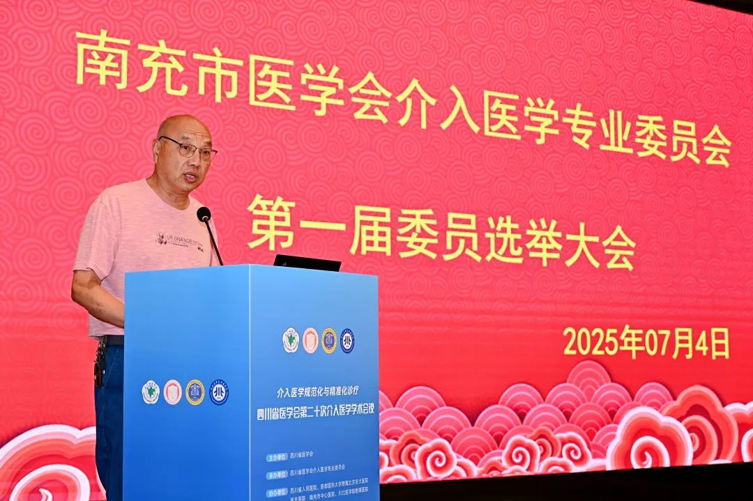 大会由南充市医学会秘书长何东风主持。他强调,介入医学作为现代医学的重要分支,因微创、精准、高效等特点,在心血管、脑血管、肿瘤及外周血管等众多疾病的诊疗中发挥着不可替代的作用,是提升区域医疗服务能力的关键技术之一。成立介入医学专业委员会,是顺应学科发展潮流、满足人民群众日益增长的高质量医疗需求的必然之举。
