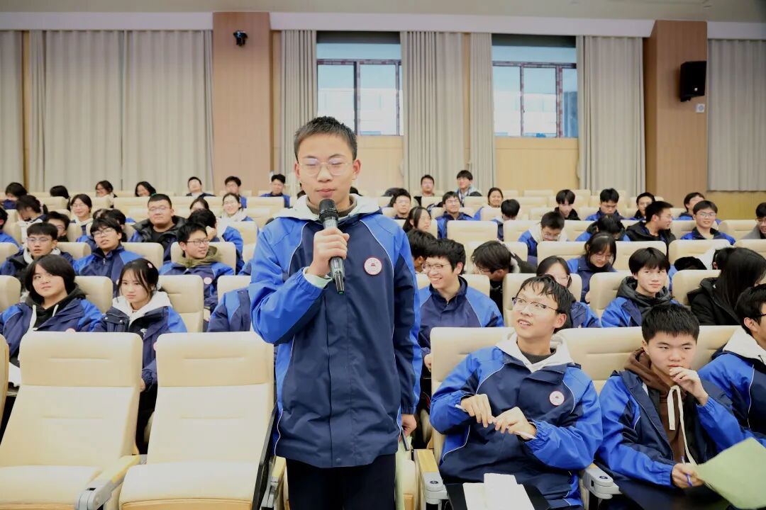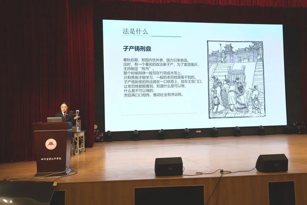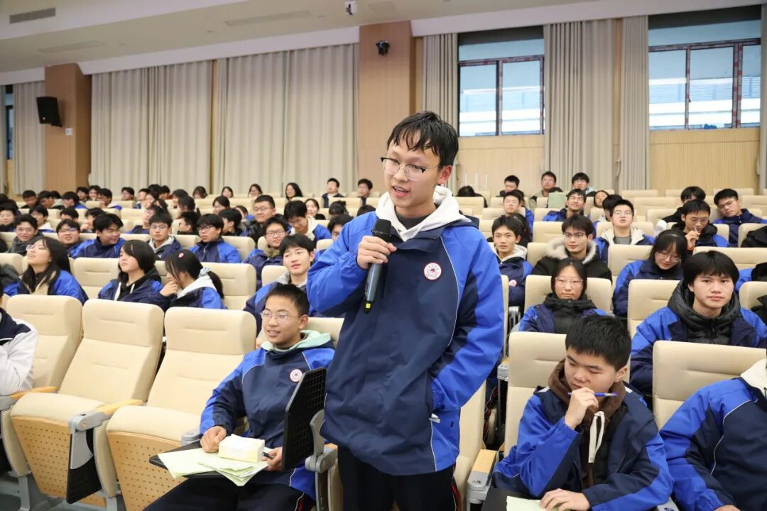 袁子淅将法律知识点融入问答环节,通过互动加深学生对法律条文的理解, 同学们认真聆听,积极互动。
