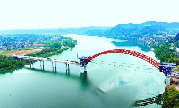 5月13日,南部县盘龙嘉陵江大桥主拱吊装完成,标志大桥主体结构建设取得重大阶段性成果。