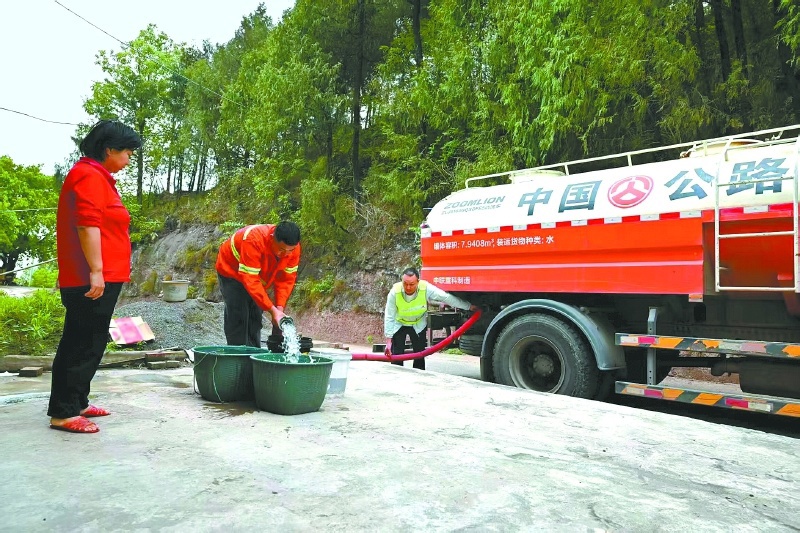 营山县公路局为大庙乡新光村群众送水。朱菠摄