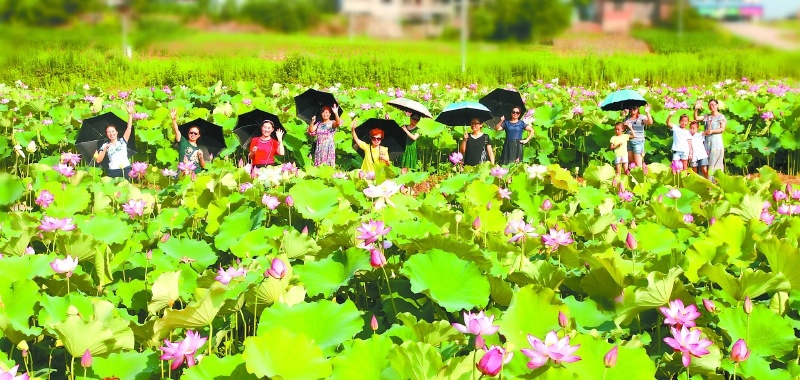 游客在仁和镇赏荷花(资料图)。
