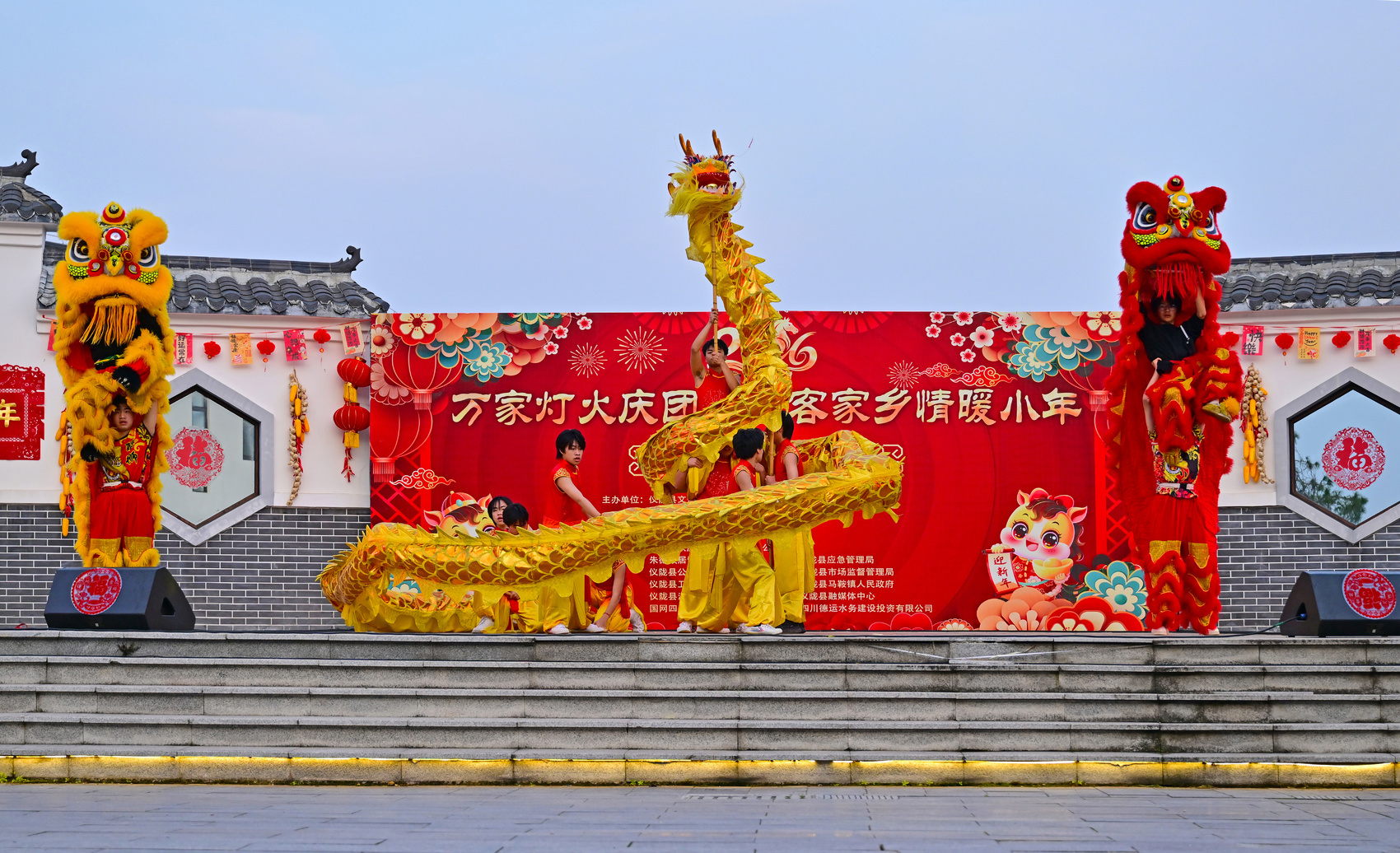 簸箕宴现场舞龙舞狮表演。张梓睿 摄