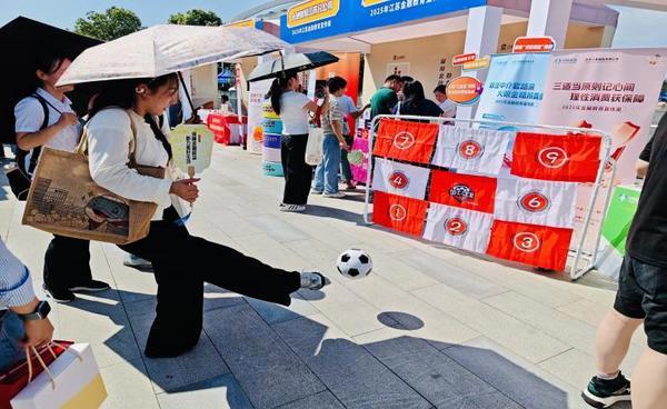 江苏分公司在金融教育嘉年华中推出“九宫格踢足球+消保问答”环节,市民边玩边学,在运动中轻松掌握防范技巧。