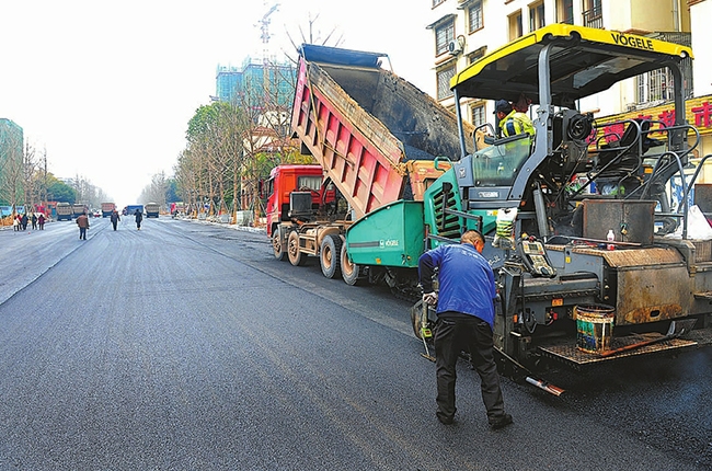 12月13日, 记者在顺庆区清风北路提升改造项目现场看到,目前,路面正在铺设中层沥青混凝土层。随着一车车沥青混凝土不断运来,摊铺机稳步向前推进, 压路机紧随其后, 一条崭新平整的道路呈现眼前。