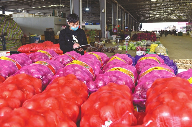 1月10日上午,记者在南充现代物流园友信龙农产品商贸物流中心看到,处处是一派繁忙的场面,运输蔬菜、水果等农产品的大货车排队开进开出。