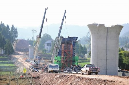 汉巴南铁路建设如火如荼,备受市民关注。1月14日下午,记者走访汉巴南铁路仪陇段施工现场看到,武棚大桥、曾家沟大桥、廖家沟大桥正紧张施工,部分桥墩已拔地而起。