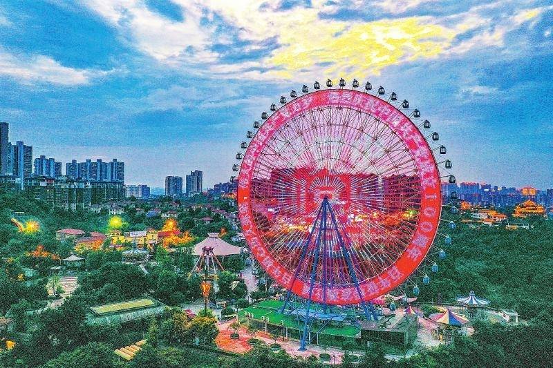 6月30日,泸州市酒城乐园点亮摩天轮“城市之眼”,庆祝中国共产党成立100周年。