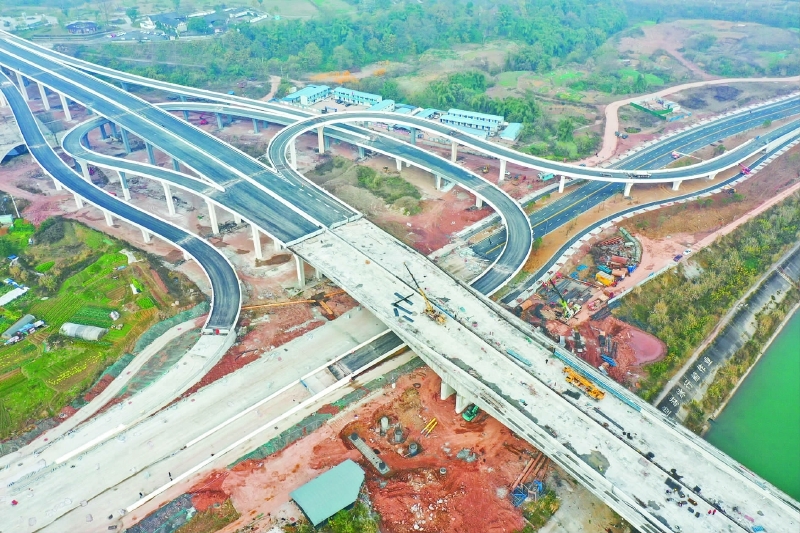 冲刺四季度,项目建设忙。12月15日,在嘉陵江将军路大桥顺庆段施工现场,条条匝道延伸环绕,宛如一条条玉带串联起主桥、乙五路和双女石路,支模、洒水、标线施划、墩身施工……工人们各司其职,现场一派繁忙景象。