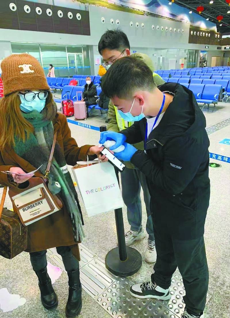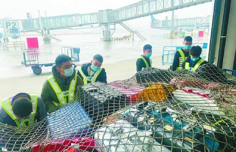 在高坪机场,回家的旅客多了起来,做完核酸检查后,旅客们走出机场大厅。南充高级中学的学子也来参加春运社会实践,引导旅客、分拣行李、搬运行李,为旅客服务。
