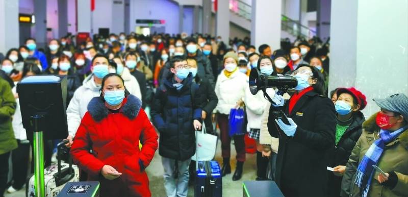 1月27日,南充火车站工作人员提醒旅客出行注意事项。
