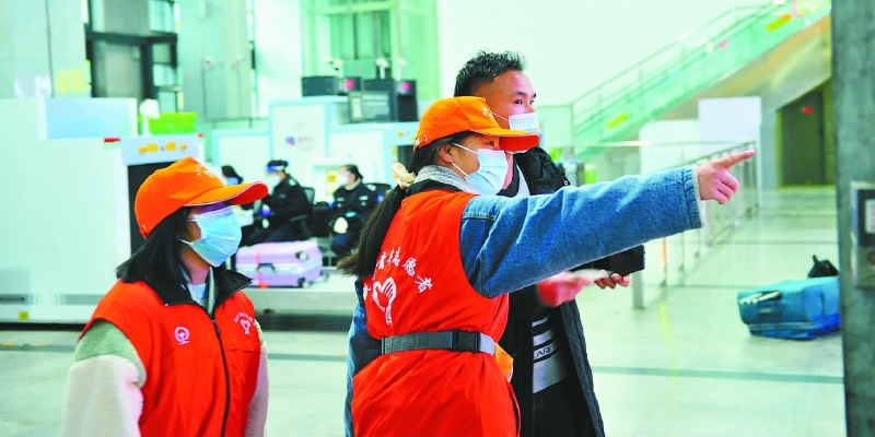 记者在南充火车站看见,回家时背包里装的、肩上扛的,一件件鼓鼓的行囊,满载的是对家人浓浓的爱。车站加强疫情防控工作,对抵达南充的旅客进行分流,实施核酸检测;志愿者们帮助旅客搬行李,开展各项服务工作。