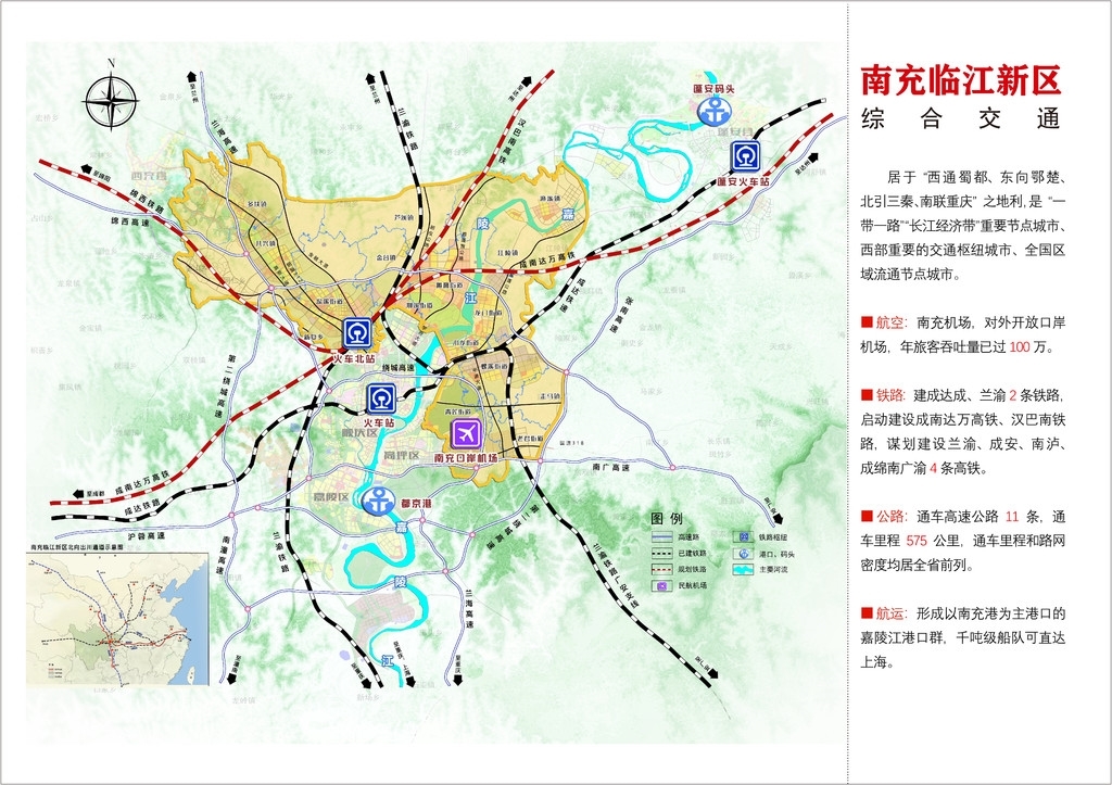 二是通达性强,规划区域处于川东北经济区几何中心,区位优势明显,集聚辐射效应较强,已形成“水陆空”立体交通体系。