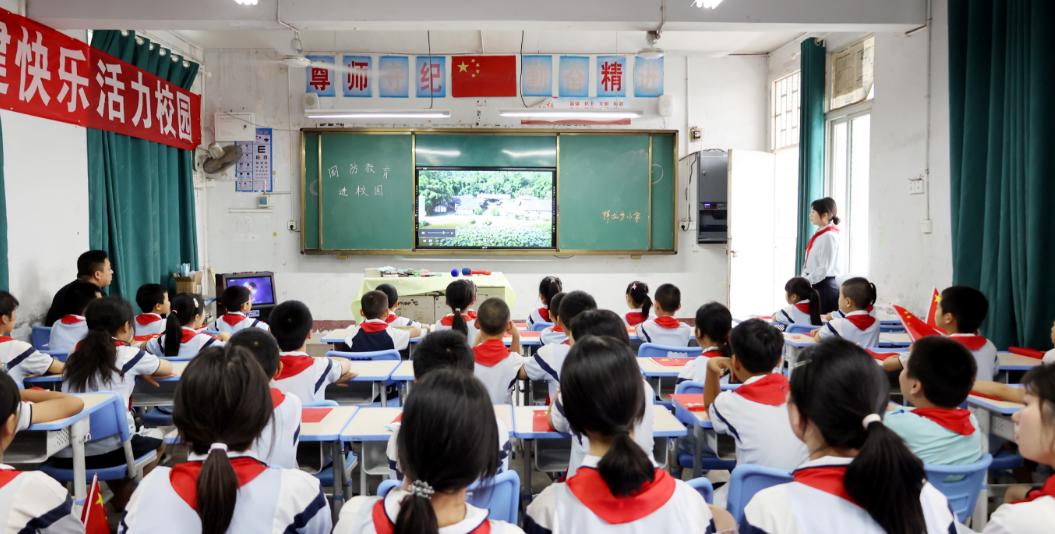 活动中,“迷彩宣教小分队”成员王漠林“接单”了红色宣讲课。他围绕“心怀国防梦 争做好少年”主题,用通俗易懂的语言,辅以图片和视频,向孩子们介绍了坦克、战斗机等“超级英雄装备”,讲解了现代化国防建设成就,引导学生增强国防观念,厚植爱国情怀。有奖问答环节气氛高涨,“我们为什么要学习国防知识?”“我们身边有哪些国防英雄?”等问题引发热烈讨论。孩子们在一次次举手互动中加深了对国防知识的认识和理解,一颗颗关心国防、热爱国防、建设国防、保卫国防的种子在孩子们心中悄然生根。