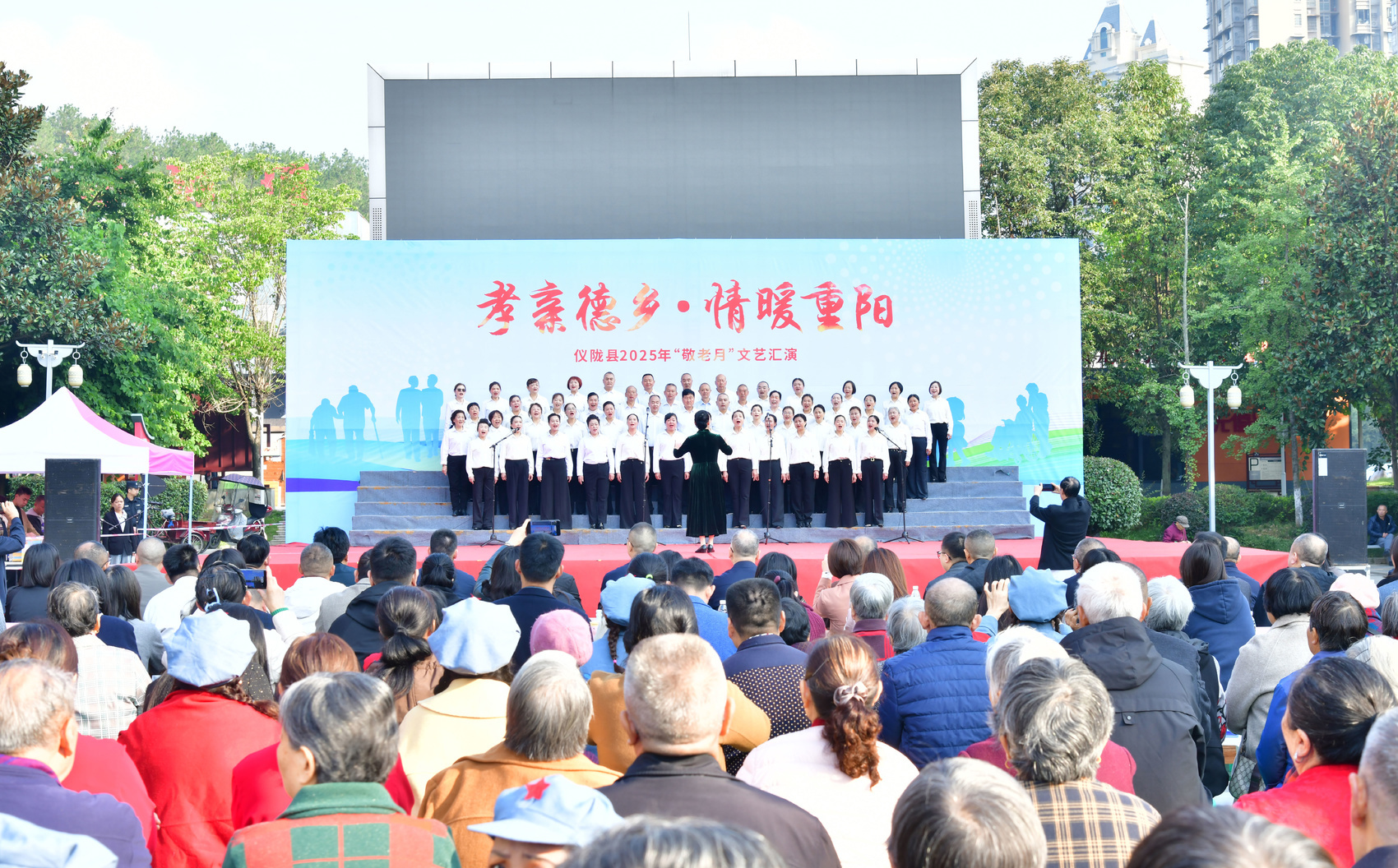 10月28日,仪陇县新时代文明实践中心广场上人头攒动。由中共仪陇县委、仪陇县人民政府主办的“孝亲德乡·情暖重阳”敬老活动在此举行,上千名县城居民齐聚现场,共庆重阳佳节。