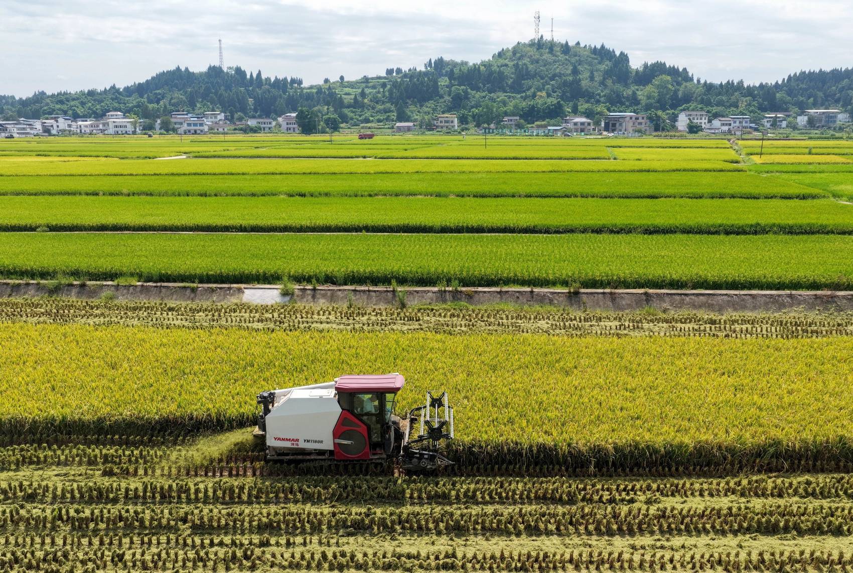 8月15日,南充市蓬安县睦坝镇武胜村,农机手驾驶收割机抢收水稻。(资料图) 摄影:刘永红