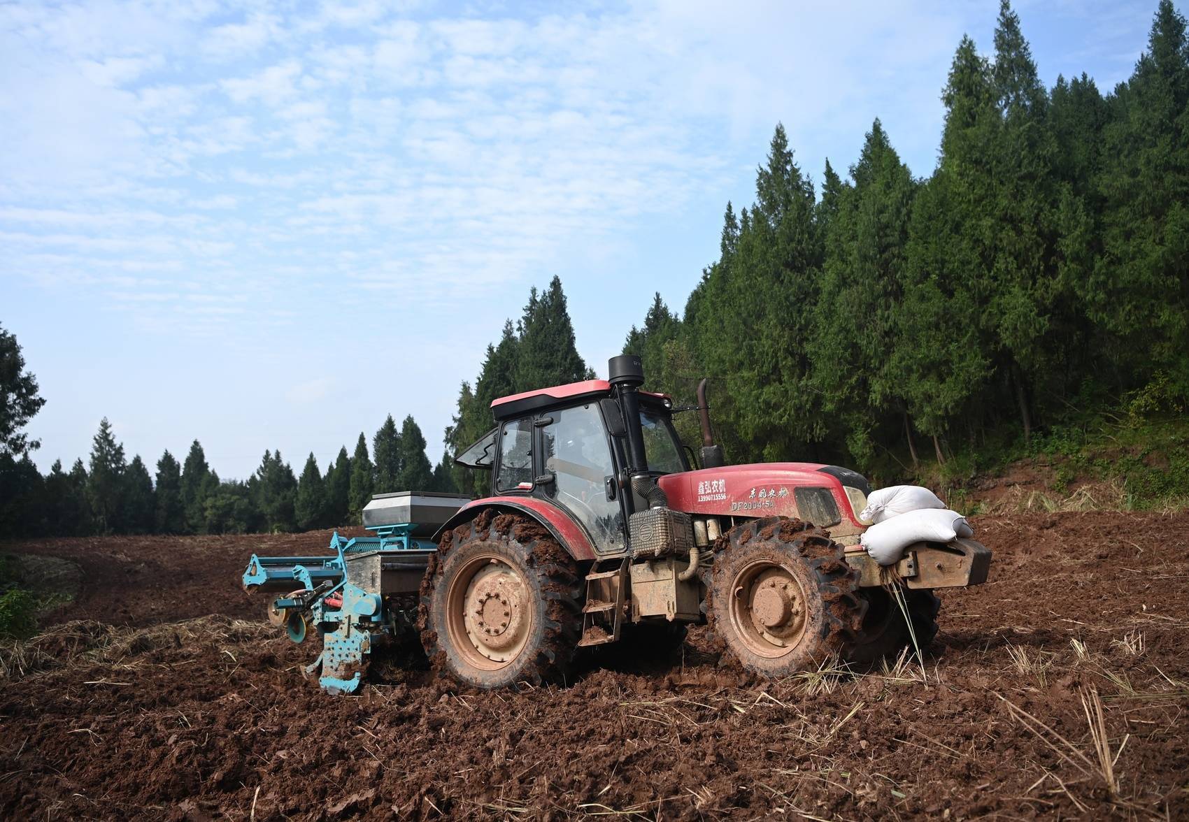 11月13日,南充市蓬安县相如街道一刚整理出来的撂荒地里,康志钢正在操作农机作业。 摄影:李文星