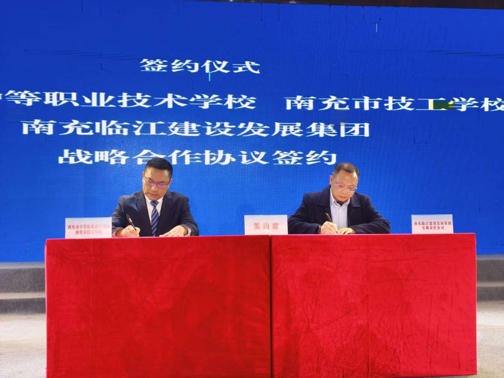 仪式现场,校企合作战略框架协议签约仪式同步举行。学校与南充临江建设发展集团正式签约,双方将在专业建设、人才培养、实训基地共建、技术服务等方面开展深度合作。