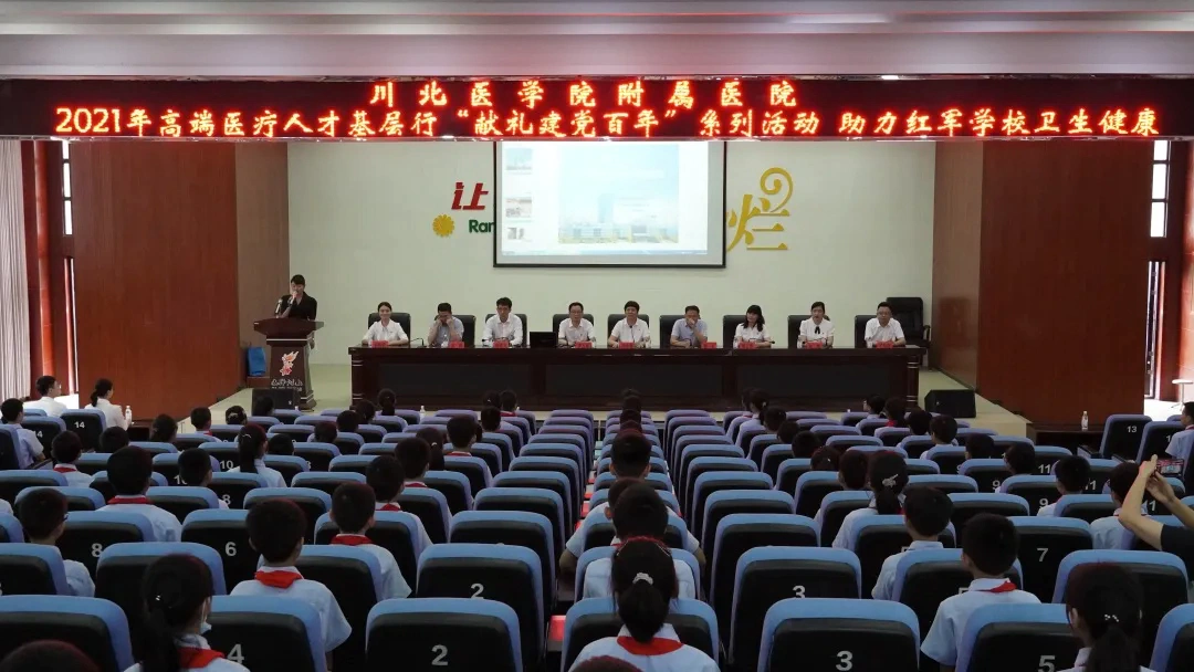 建党百年助力红军学校卫生健康。巴中师范附属实验小学是红军1932年入川创办的“川陕工农小学”,是当时“川陕少先队总部”所在地。24日下午,川北医学院附属医院基层行活动成员来到该校兴文校区,在广大青少年群体中深入开展革命精神、革命传统教育,让孩子们感恩自强、刻苦学习,让“红色基因代代相传”,为祖国繁荣昌盛添砖加瓦。川北医学院预防医学系与医院眼科专家博士还专门为师生们上了一堂儿童青少年近视防控与常见病预防等健康教育课。