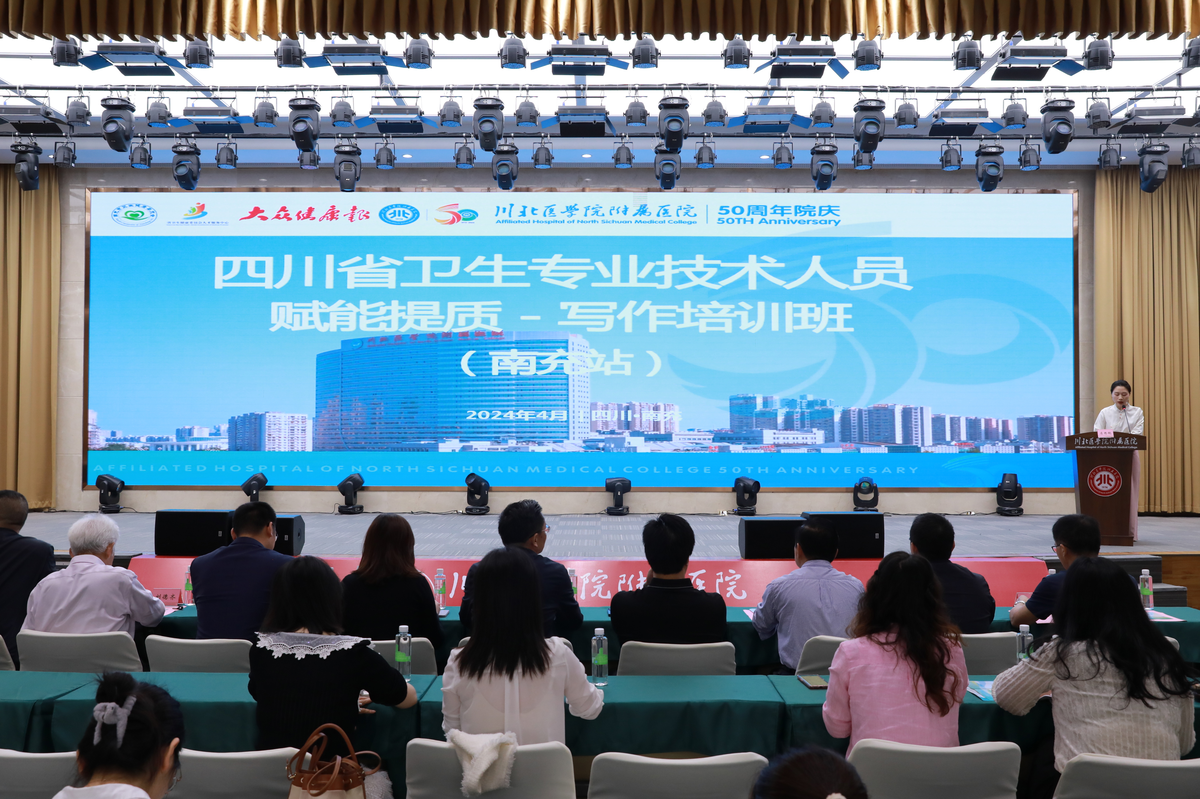 近日,四川省卫生专业技术人员赋能提质——写作培训班(南充站)在川北医学院附属医院成功举办,此次培训班作为医院50周年院庆系列学术活动的重要组成部分,吸引了南充市各级医疗卫生机构管理人员、中级及以上卫生专业技术人员共300多人参加。医院副院长马代远,南充市卫生健康委党委委员、副主任伍小平,四川省卫生健康委人才服务中心副主任肖兵出席开班仪式并讲话,南充市卫生健康委人事科科长何静,南充市卫生健康信息中心主任罗洲出席开班仪式。