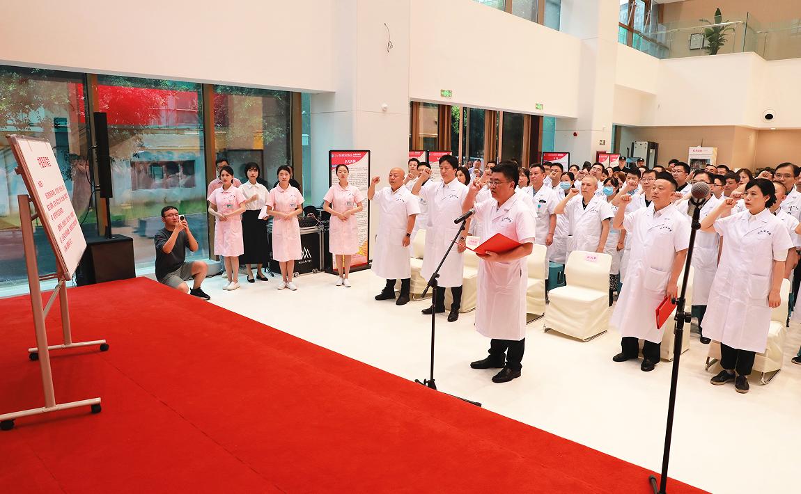 当日上午,川北医学院附属医院党委书记杨汉丰宣布文化路院区焕新归来,门诊正式投入试运行,并带领现场医务人员代表重温医学誓言。门诊区域还开展了义诊体检、健康宣教、医保政策宣讲以及急救技能演示等惠民活动。