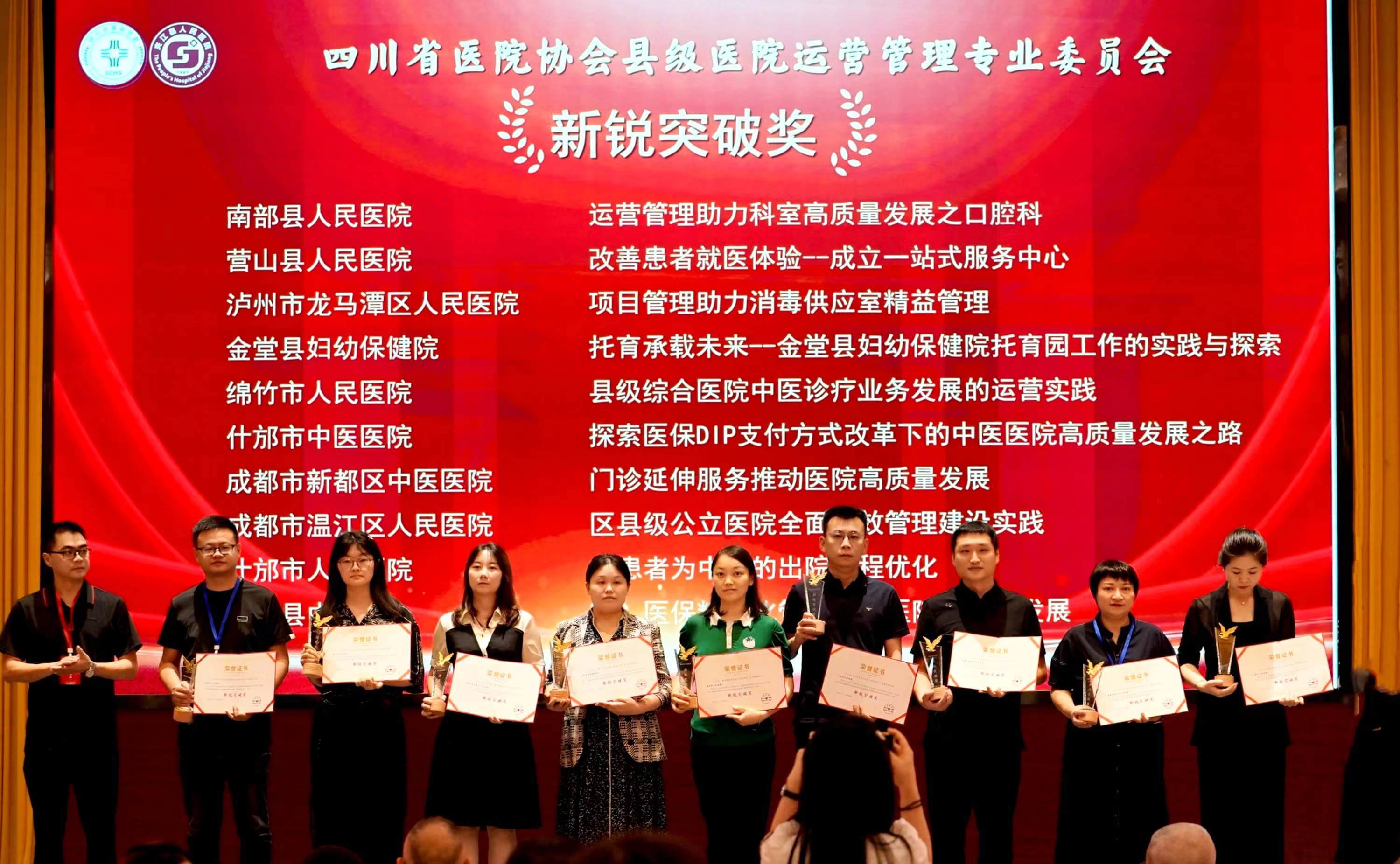 6月28日,由四川省医院协会主办的四川省第三届县级医院运营管理学术交流会在乐山市举办,大会对第二届“全省县级医院高质量发展精益运营优秀案例”评选获奖单位进行了表彰。设立了5个奖项:卓越先锋奖、新锐突破奖、管理优秀奖、最佳组织奖、最佳人气奖,共有来自全省各级医疗机构的近百个案例入围。经过案例征集、案例初选、评委评分、专家终审等环节,营山县人民医院精心选送的案例《改善患者就医体验——成立一站式服务中心》脱颖而出,荣获“新锐突破奖”和“最佳人气奖”两大奖项!