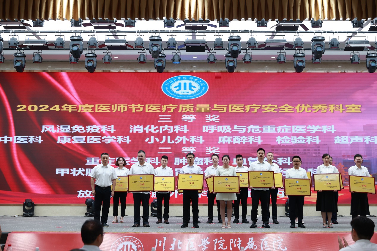 为庆祝2024年度“中国医师节”,弘扬本年度医师节主题“崇尚人文精神,彰显医者仁心”,大力弘扬伟大抗疫精神和崇高职业精神,切实担负起推进健康中国建设、保障人民健康的神圣使命,不断谱写新时代卫生健康事业高质量发展新篇章,8月16日下午,川北医学院附属医院庆祝2024年度“中国医师节”表彰大会在科研教学综合楼302学术厅举行,医院党政领导、各临床、医药技负责人及获奖科室代表、获奖个人代表参会,副院长任亦星主持大会。