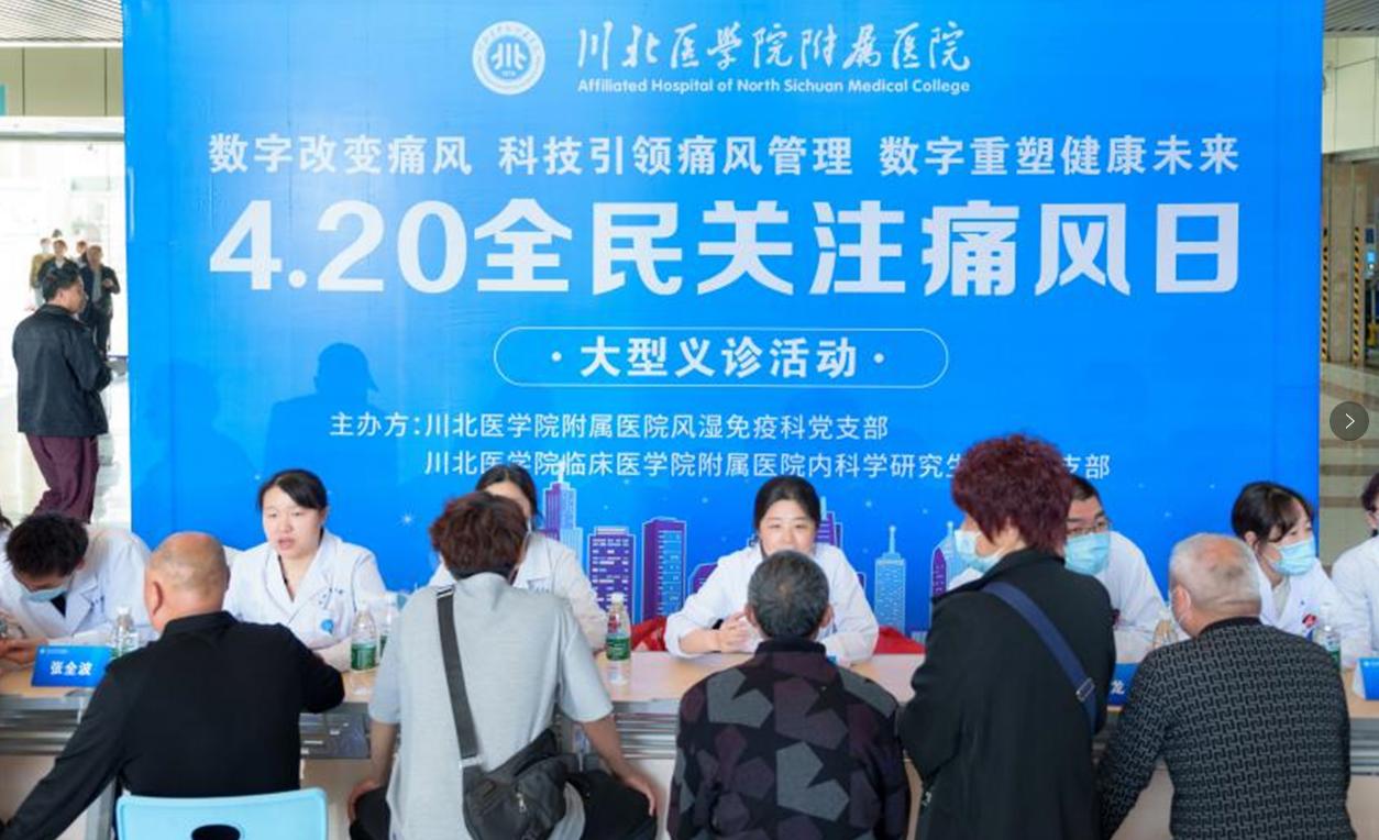 为迎接“4·20全民关注痛风日”,倡导科学防治理念,4月16日,川北医学院附属医院开展以“数字改变痛风”为主题的大型痛风义诊活动。此次活动由风湿免疫科专家团队领衔,旨在通过公益服务、健康宣教和疾病筛查,助力患者科学管理、远离痛风困扰,提升全民健康素养。