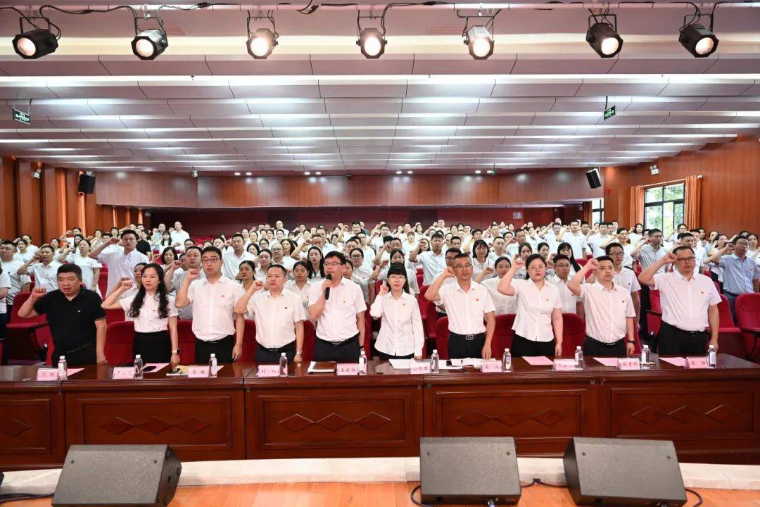大会在庄严的国歌声中拉开帷幕。全体党员起立,齐声高唱国歌,激昂的旋律激荡着每一个人的爱国情怀。随后,在医院党委书记王建勋带领下,全体党员举起右拳,重温入党誓词。“我志愿加入中国共产党······随时准备为党和人民牺牲一切,永不叛党。”铿锵有力的誓言,回荡在会场的每一个角落,字字千钧,是党员们对党的庄严承诺,更是镌刻在心底的永恒信念。
