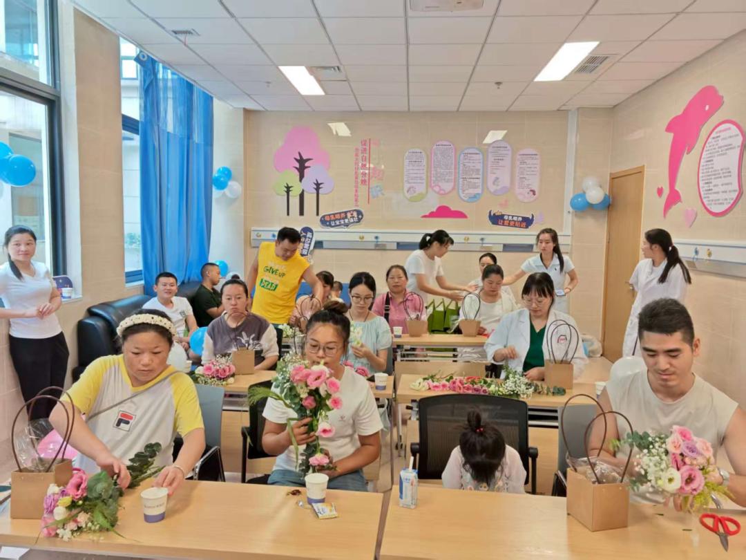 在产科医护人员的带领下,和各新手爸妈以及准爸妈们共同进行插花体验,在花香与创作中放松减压、愉悦心情。旨在强调呵护好自己,才能更好地哺育宝宝。